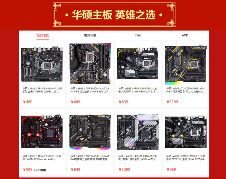 在“华硕主板 英雄之选”专区的“热销爆款”和“电竞利器”专栏,共有16款明星力作参与此特惠,包括ROG MAXIMUS XI HERO (WI-FI)、ROG STRIX Z390-E GAMING、TUF Z370-PLUS GAMING II等Intel 300系主板;及TUF B450M-PLUS GAMING、ROG STRIX B450-F GAMING、ROG CROSSHAIR VII HERO (WI-FI)等AMD AM4系主板,均有不同程度的满减力度,玩家们可随心选购,轻松打造自己心仪的高性能电脑。
