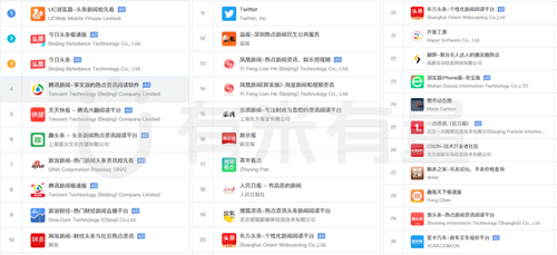 在榜单TOP30中,能见到趣头条这类新型的后起之秀,有新浪新闻、网易新闻在内的门户类平台,也有人民日报、新京报这类全国性综合新闻客户端,也不乏新浪财经此类垂直类平台的身影。