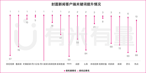 由于高热行业词的带量效果较好,预算较大的新闻客户端,建议选取高热行业词进行优化,例如封面新闻就优先选取新闻、资讯、头条等高热词进行持续优化至高位。