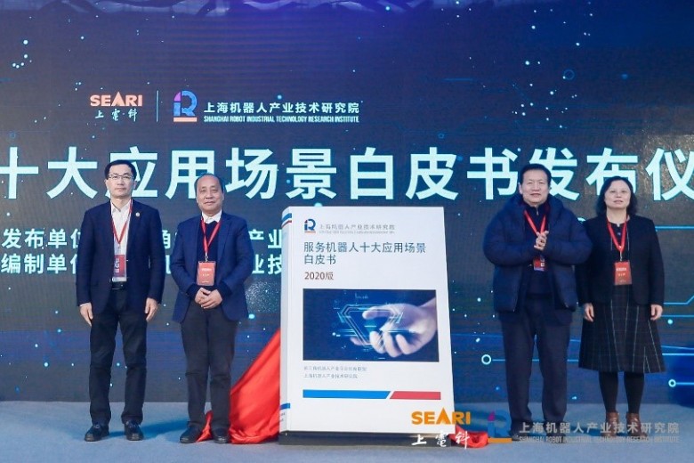 7、长三角机器人平台产业创新联盟副理事长甘中学、长三角机器人平台产业创新联盟副理事长孙立宁、长三角机器人平台产业创新联盟执行秘书长周明玉和上海大学机自学院副院长刘丽兰四位嘉宾共同为白皮书揭幕,2020版《服务机器人十大应用场景白皮书》正式发布。