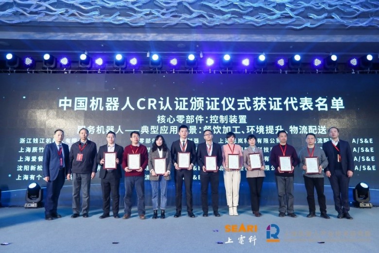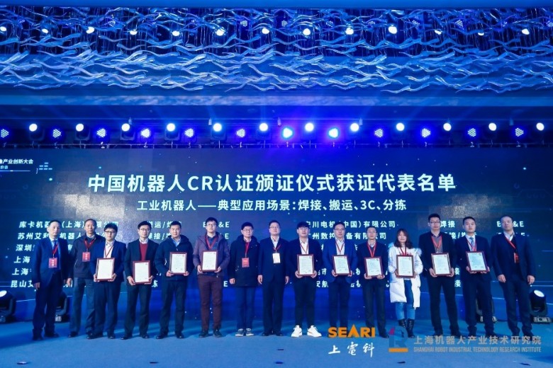 2、《中国机器人CR认证目录》正式发布,中国机器人产业联盟执行理事长宋晓刚、中国机器人检测认证联盟秘书长王爱国和中国机器人检测认证联盟技术委员会主任郑军奇3位嘉宾为获得CR认证的21家企业颁发证书。