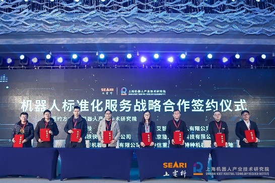 9、在本次大会上,上海机器人产业技术研究院举行研发成果转化战略合作集中签约仪式,由上海机器人产业技术研究院与企业进行集中签约。签约项目分别聚焦标准化服务、可靠性质量提升、机器人机器人创新应用、产业创新投资、技术成果交易等五个方面。